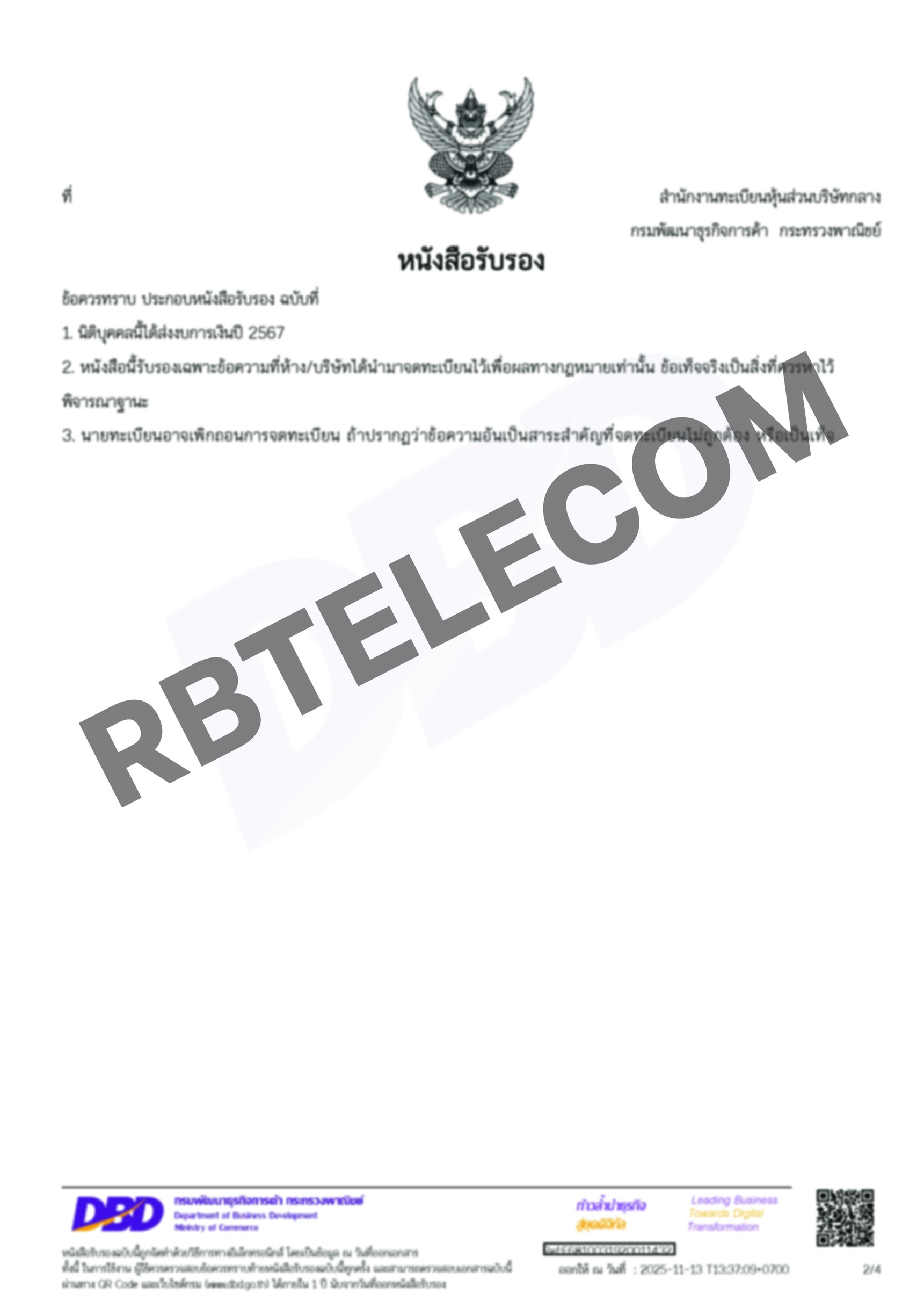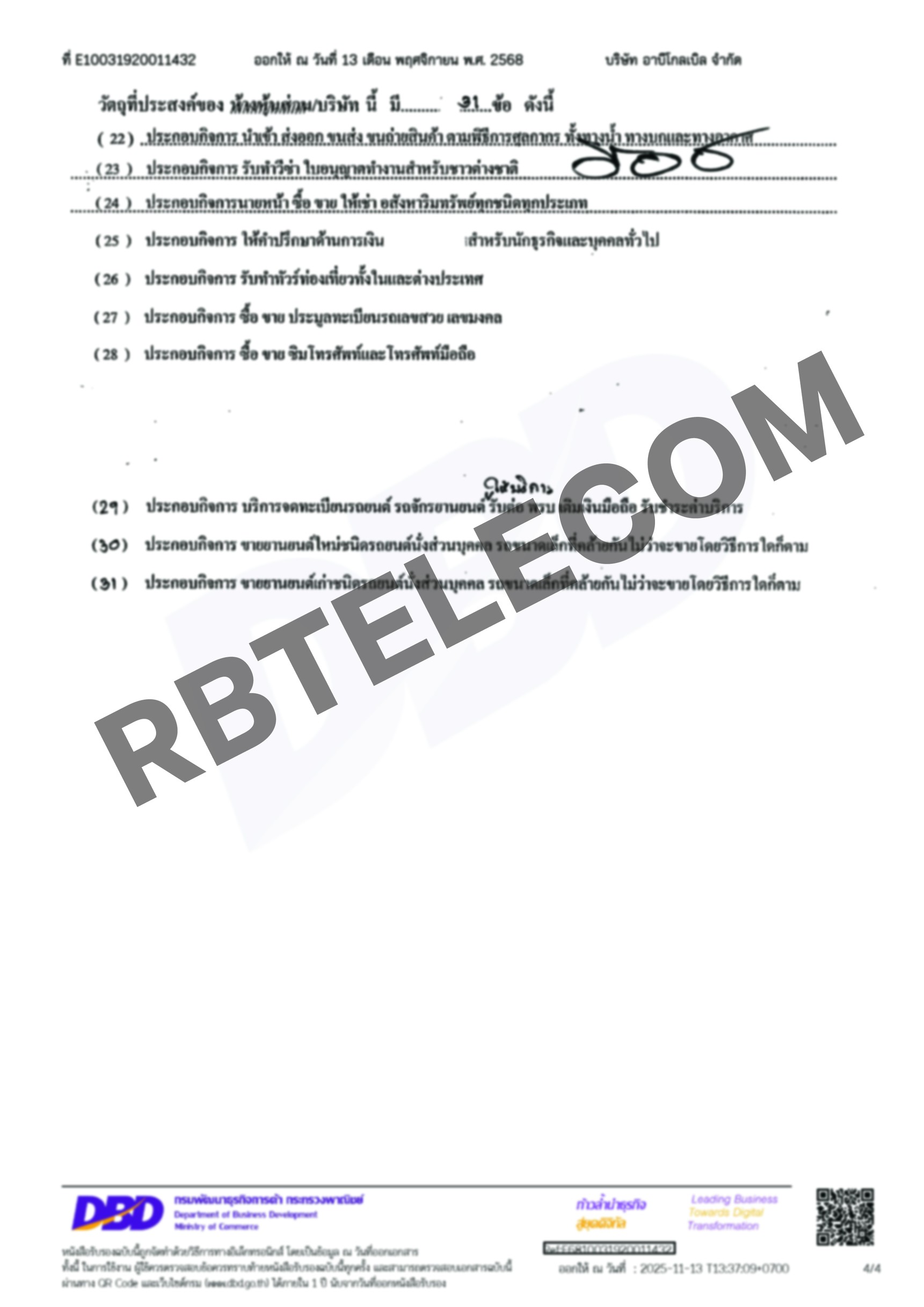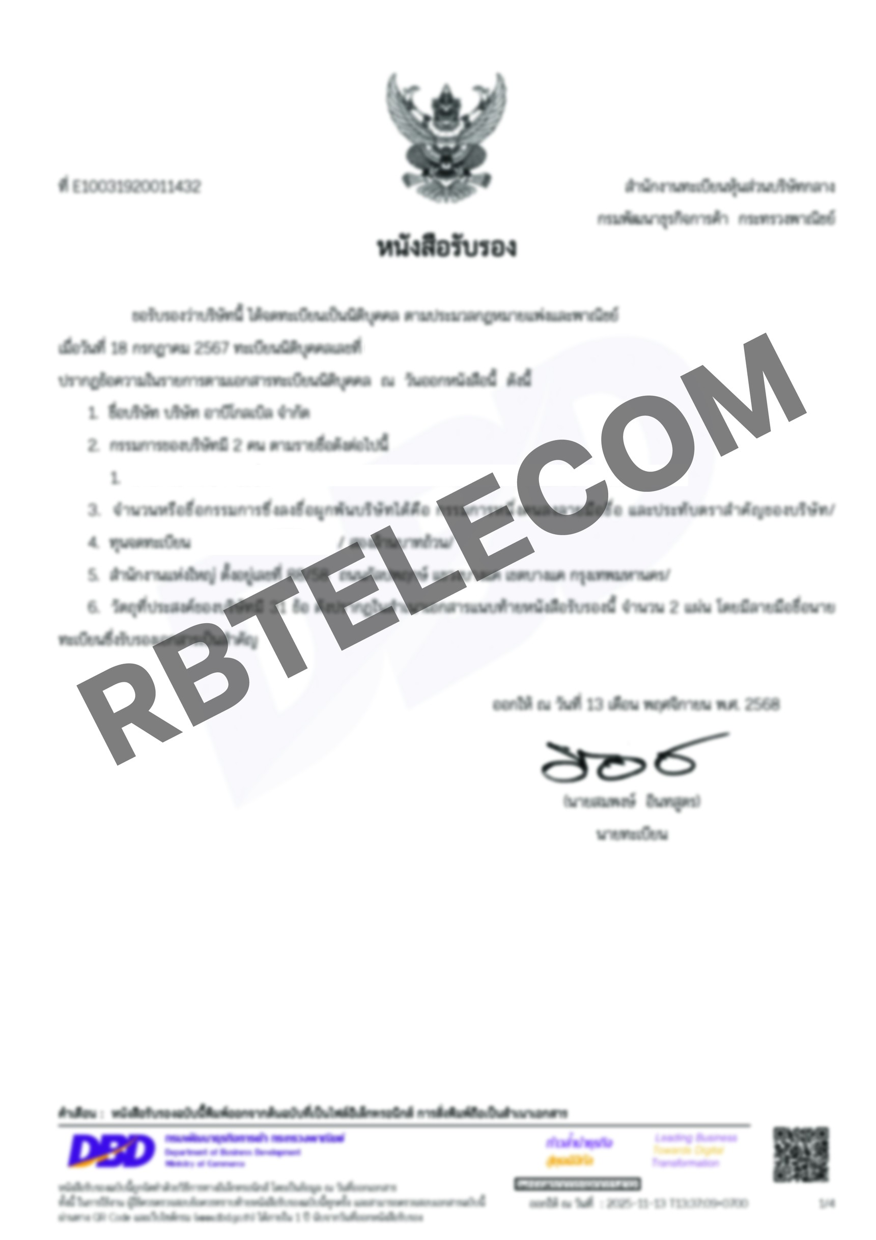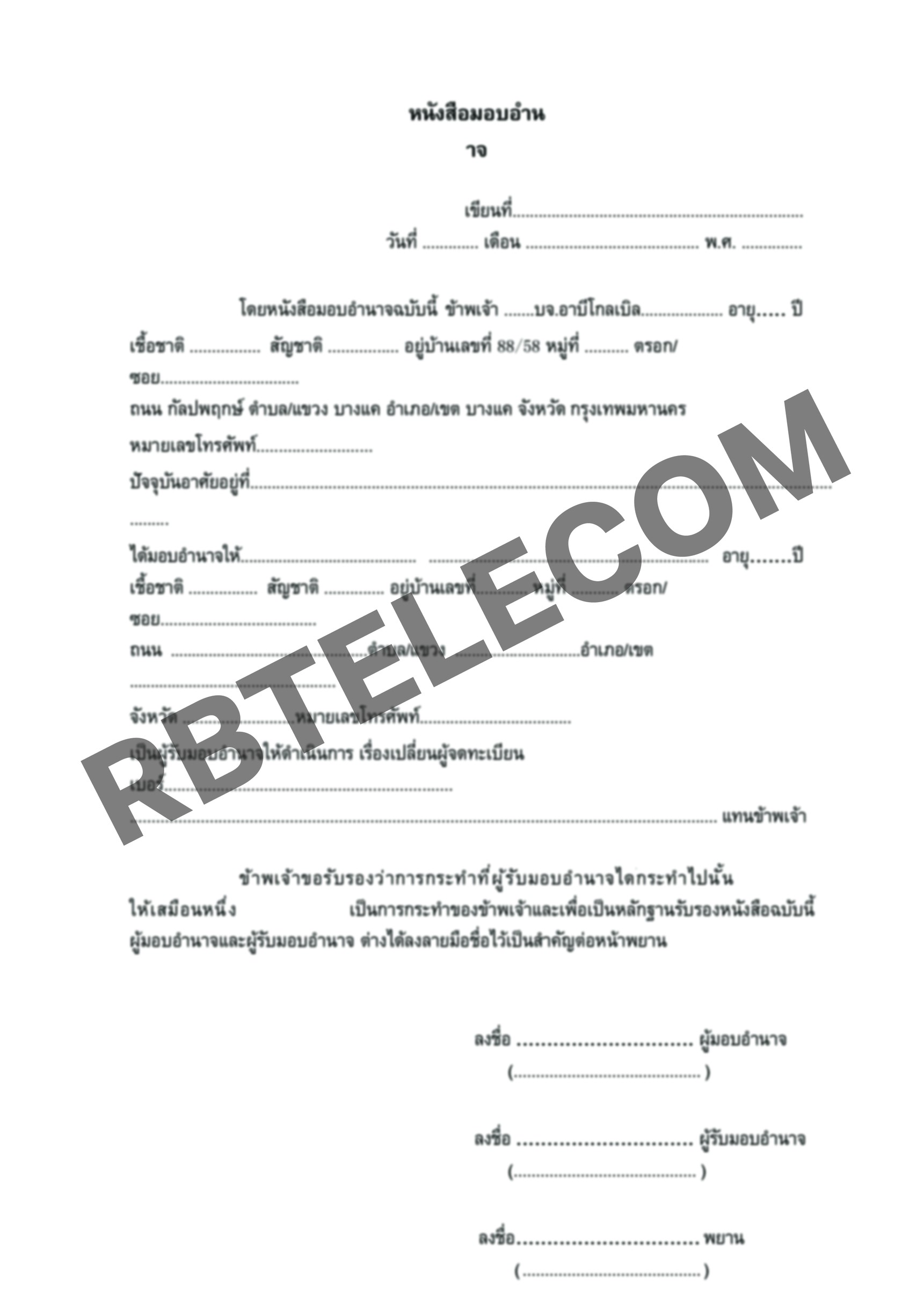 เอกสารตัวอย่างการเปลี่ยนชื่อลงทะเบียนเบอร์สวย